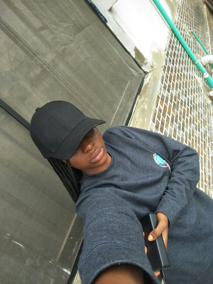 An individual, appearing to be a young female, is depicted in a close-up selfie taken in Iranla, Nigeria