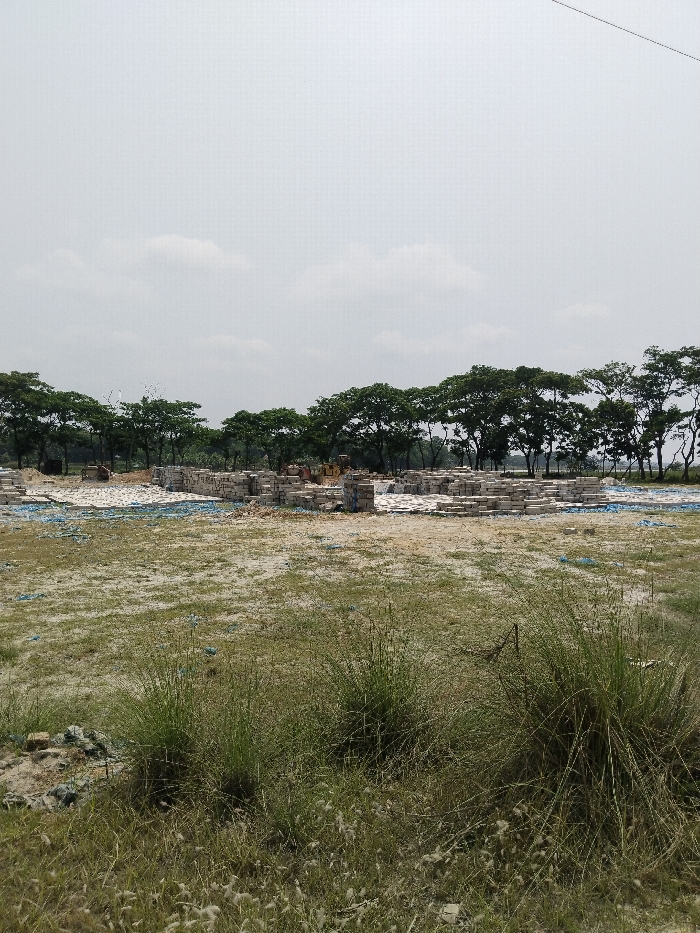 partially constructed building site in Pangasia, Bangladesh, located at coordinates (latitude: 22