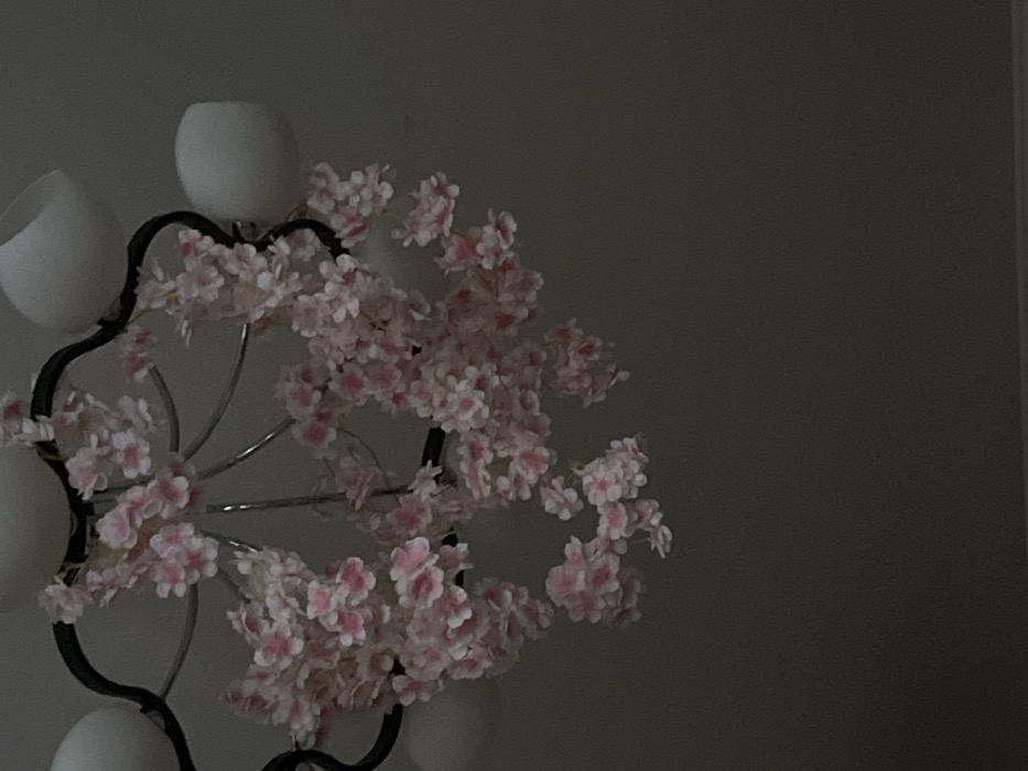 - "A chandelier adorned with artificial pink cherry blossoms is suspended from a light-colored ceiling" by FM-BcfNf1, licensed under CC BY 4.0