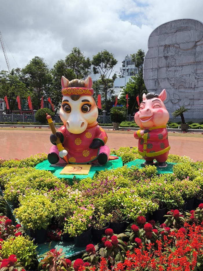 - "An outdoor scene in the city of Quy Nhon Ward, Vietnam, displays two colorful cartoon animal statues set within a landscaped plaza under a partly cloudy sky" by FM-ETbE83, licensed under CC BY 4.0