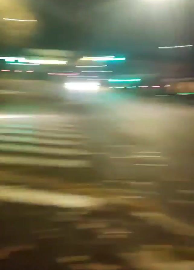 two people walking down a sidewalk at night, then the camera pans to a street with a crosswalk