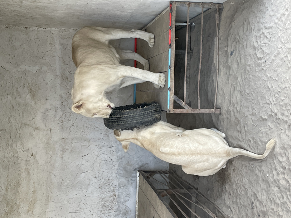 - "The image displays two white lions within a utilitarian animal enclosure, likely located in Kandahar, Afghanistan" by FM-LYje72, licensed under CC BY 4.0