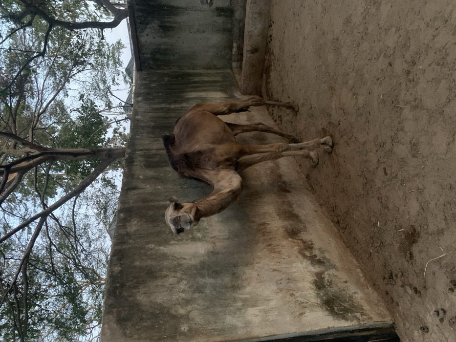 - "A camel stands in an enclosure with a concrete wall on one side and a dirt floor on the other" by FM-ypWMW2, licensed under CC BY 4.0