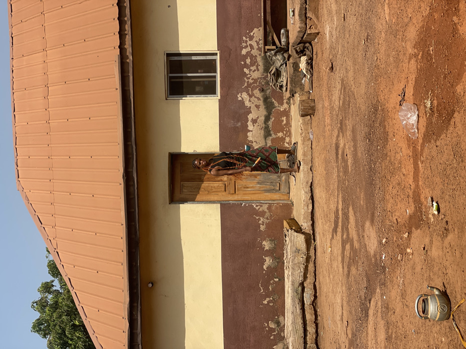 The image depicts a rural or semi-urban scene in Oturkpo, Nigeria, under bright sunlight