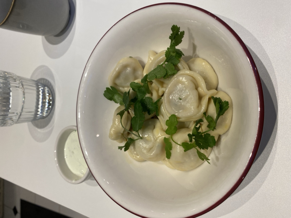 - "A top-down shot showcases a white bowl filled with boiled dumplings, garnished with fresh parsley" by FM-WFDIY2, licensed under CC BY 4.0