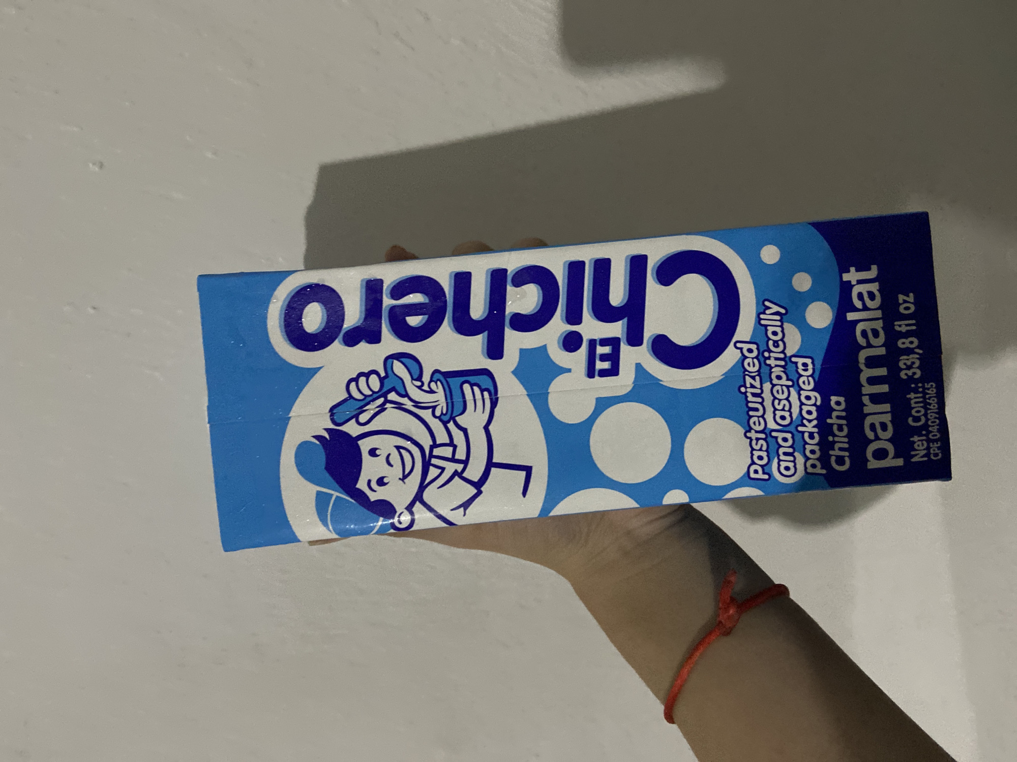 - "A hand holds a blue Parmalat "El Chichero" Chicha box, advertising pasteurized and aseptically packaged Chicha" by FM-H5MsC3, licensed under CC BY 4.0