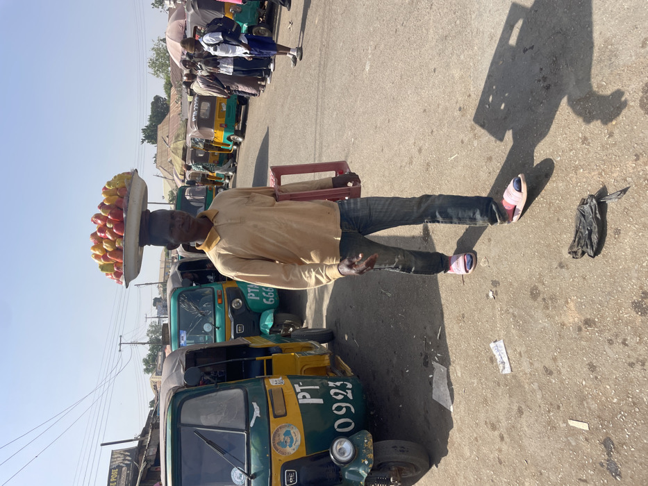 - "A male individual is depicted walking on a sunlit, worn asphalt road in a market or transport area in Jos, Plateau State, Nigeria" by FM-ch6932, licensed under CC BY 4.0