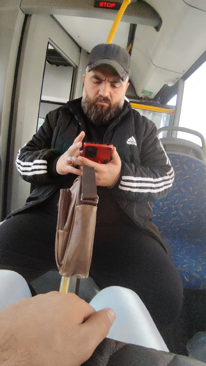 - "An adult male is seated within a public transport vehicle, likely a bus, in Sarouja Municipality, Syria" by FM-YWUCQ2, licensed under CC BY 4.0