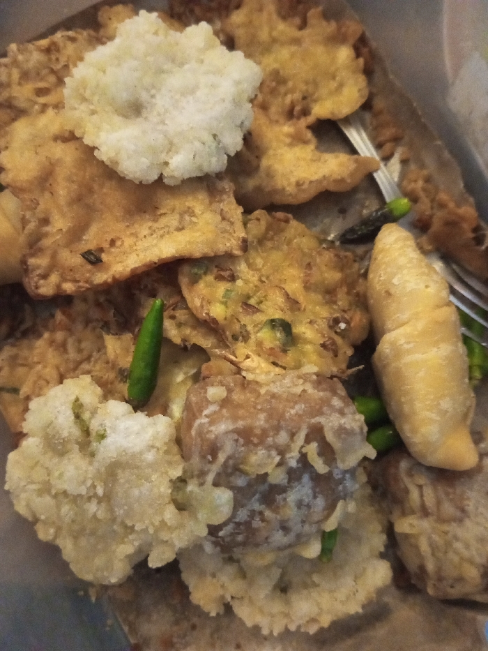 - "The image displays a close-up, overhead view of an assortment of fried food items arranged within a metallic or foil-lined tray, located in Melakudikadu, India" by FM-HvO5s1, licensed under CC BY 4.0