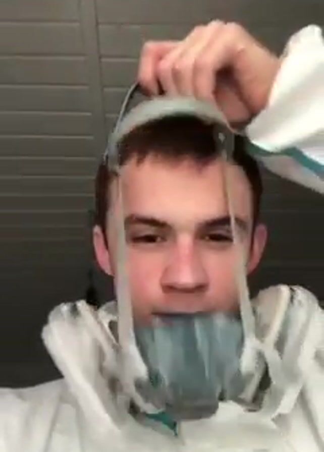 - "A young man with short brown hair is putting on a half-face respirator mask" by FM-kQyTu2, licensed under CC BY 4.0