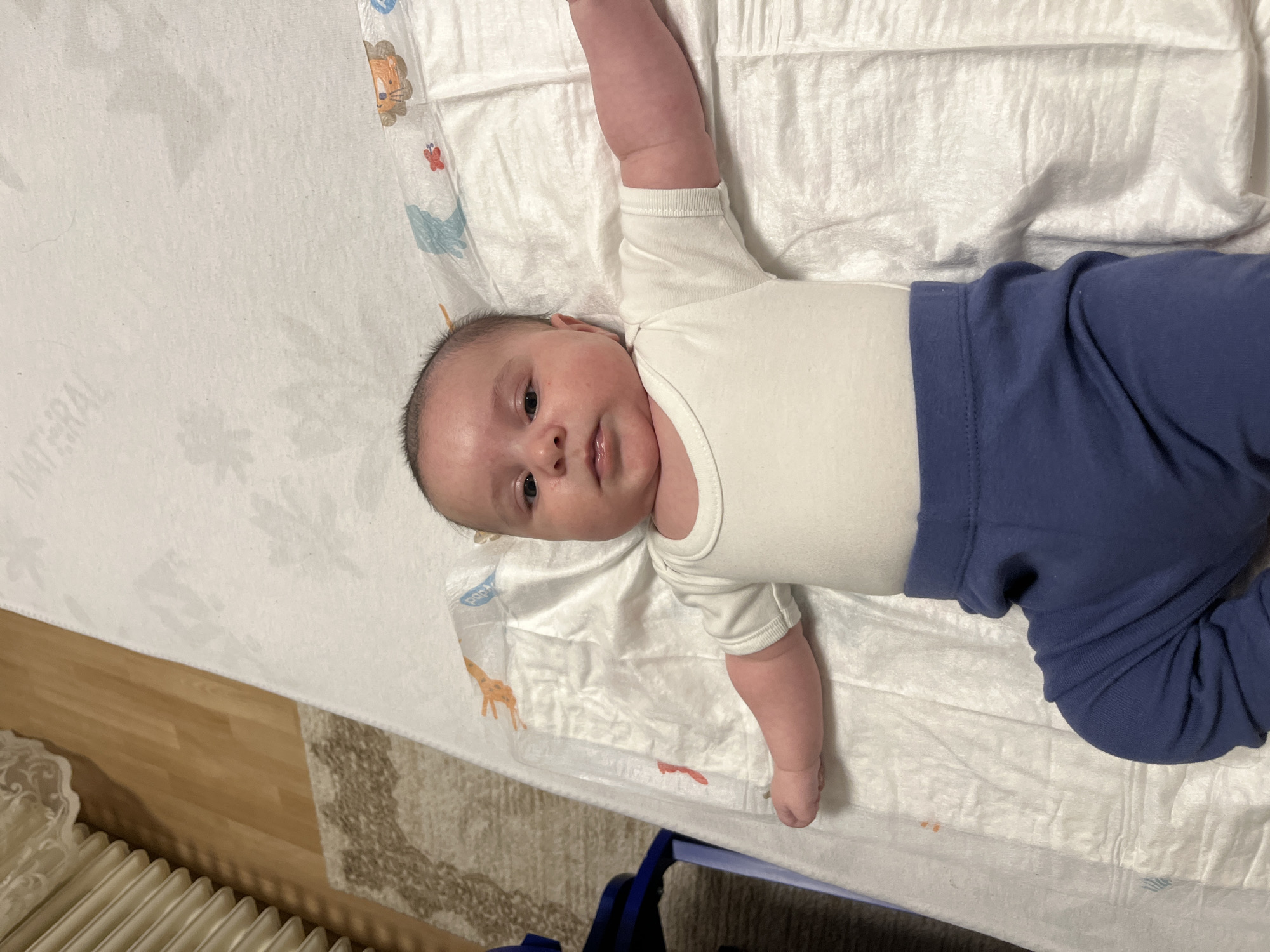 - "An infant is observed lying supine on a white changing pad or mattress cover in an indoor setting in Offenbach am Main, Germany" by FM-MXTUt1, licensed under CC BY 4.0