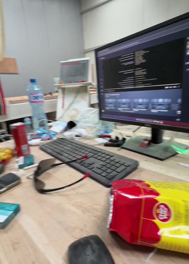 - "The video begins with a close-up of a cluttered desk, featuring a computer monitor displaying text, a keyboard, mouse, phone, sunglasses, a water bottle, a pack of cigarettes, and a bag of chips" by FM-sJuen1, licensed under CC BY 4.0