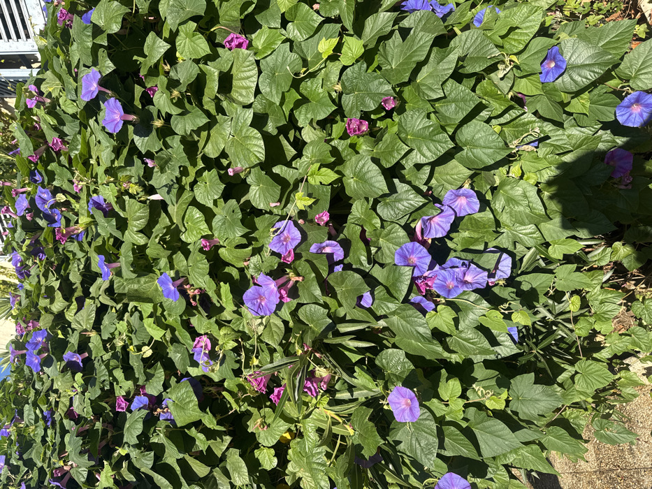 - "This image depicts a dense tangle of flowering vines, likely morning glories (Ipomoea), covering a vertical surface in Cogolin, France" by FM-CIOZn2, licensed under CC BY 4.0