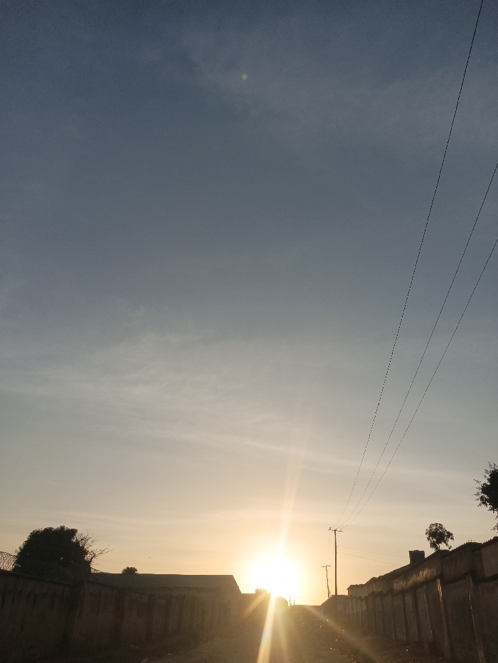 - "The image displays an exterior scene in Barakin Akawo, Nigeria, illuminated by a low-angle sun positioned centrally near the horizon, indicative of either sunrise or sunset" by FM-TLctW2, licensed under CC BY 4.0