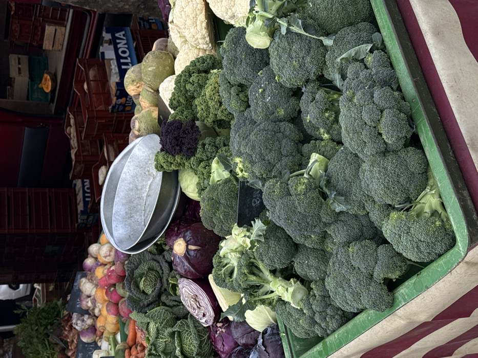 This image captures a market stall presenting fresh produce in Lyon, France