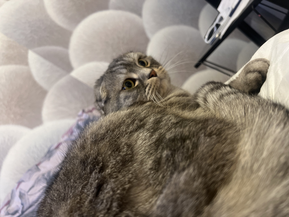 - "An image captured in Murino, Russia, depicts a domestic cat, specifically a Scottish Fold, partially visible in the foreground" by FM-6LnVy2, licensed under CC BY 4.0