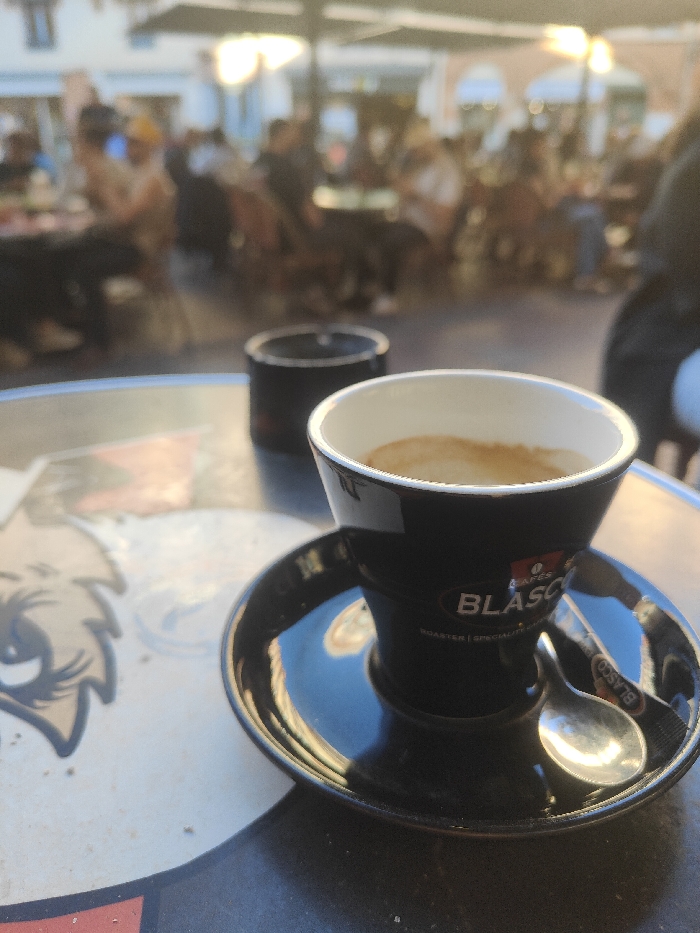 - "The image provides a close-up, angled view of an outdoor cafe table in Toulouse, France, specifically at Cafés Blasco, located at 1 Rue des Changes" by FM-5lleo2, licensed under CC BY 4.0