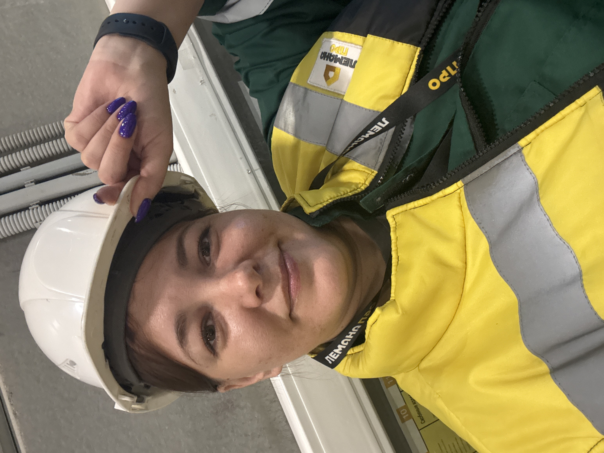 A female individual is depicted in a close-up, selfie-style image taken within an indoor facility in Lupanovo, Russia