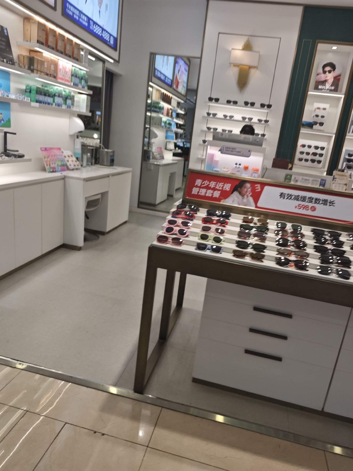 interior of what appears to be an eyewear store, located somewhere in the city of Liangjiang, China