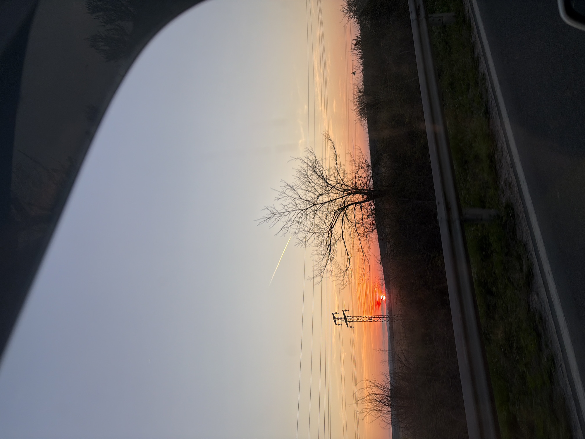 sunset, possibly in the vicinity of Kiten, Bulgaria, as viewed from inside a vehicle