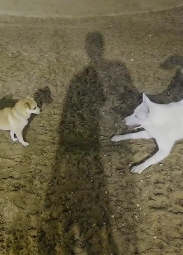 - "sandy dog park with two dogs and the shadow of a person" by FM-Zrr2E2, licensed under CC BY 4.0