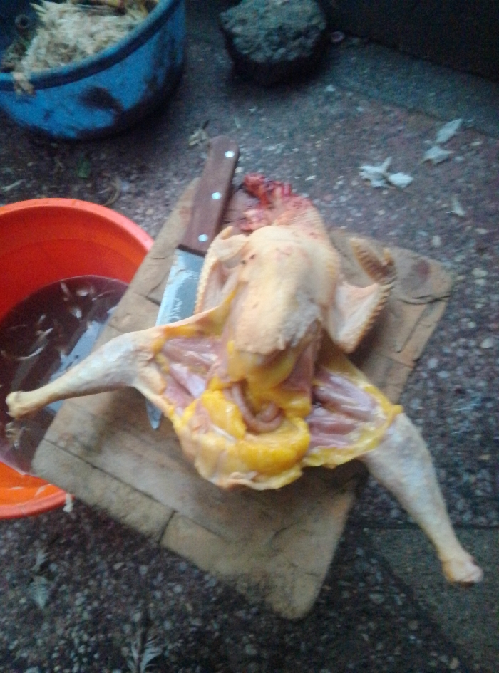 - "The scene, located in Nairobi, Kenya, presents a freshly processed, plucked poultry carcass positioned breast-up on a worn wooden cutting board" by FM-c9RUg1, licensed under CC BY 4.0