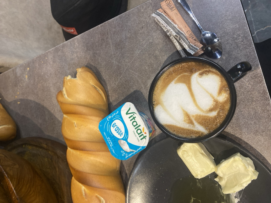 - "An overhead close-up view presents a breakfast or snack arrangement on a dark grey, textured table, located in the city of Monastir, Tunisia" by FM-MhJ4d2, licensed under CC BY 4.0