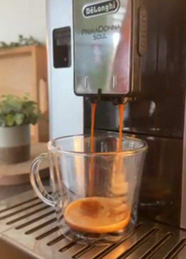- "A DeLonghi PrimaDonna Soul espresso machine dispenses espresso into a clear glass mug with a double wall" by FM-3ujak2, licensed under CC BY 4.0