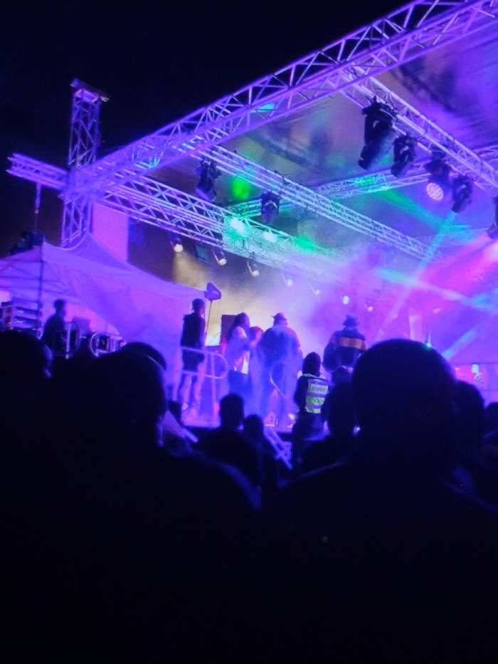 This image depicts an outdoor night concert or event taking place at a venue in Dodoma, Tanzania