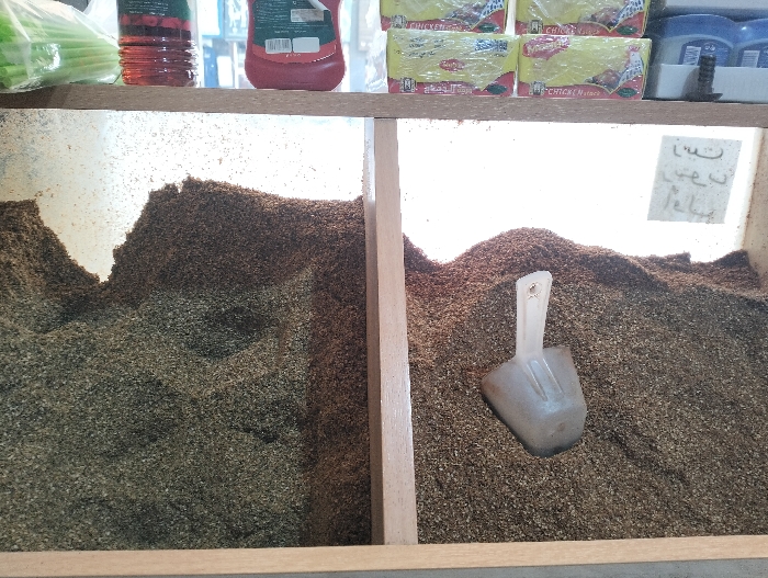 - "The image displays a scene from a market stall or grocery store in Hims, Syria, focusing on bulk dry goods" by FM-4RDN43, licensed under CC BY 4.0