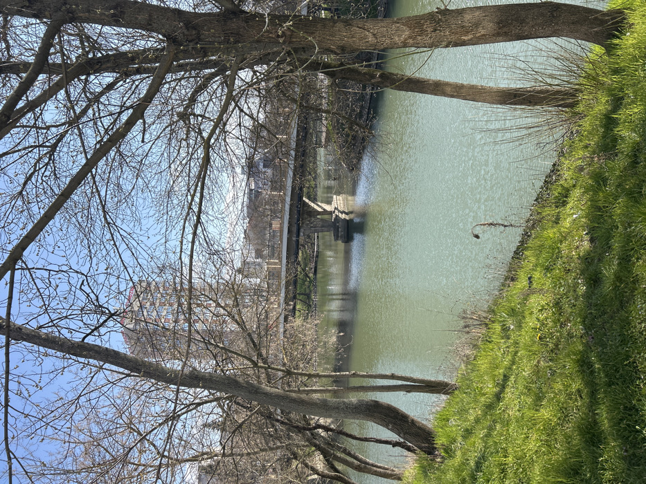 - "The image depicts a daytime outdoor scene in Yambol, Bulgaria, characterized by a river flowing under a bridge, framed by bare trees, under a clear blue sky" by FM-e3q8h1, licensed under CC BY 4.0