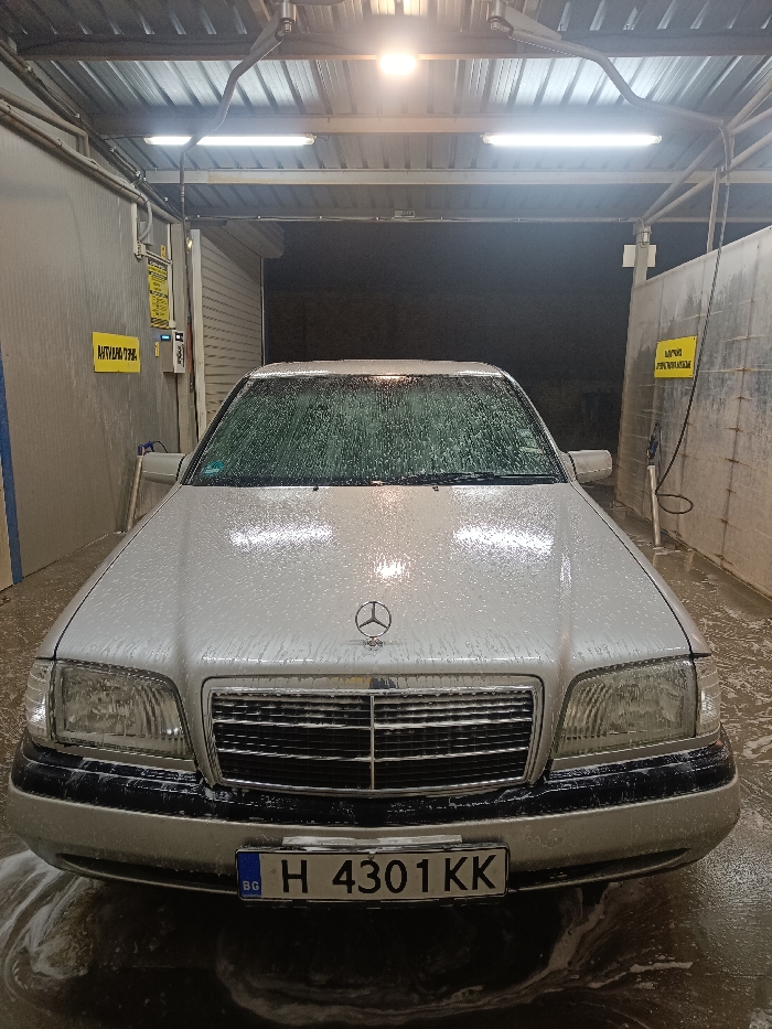 - "A silver Mercedes-Benz sedan, oriented frontally, is positioned within an illuminated, indoor car wash bay in Byala, Bulgaria" by FM-JLyeu2, licensed under CC BY 4.0