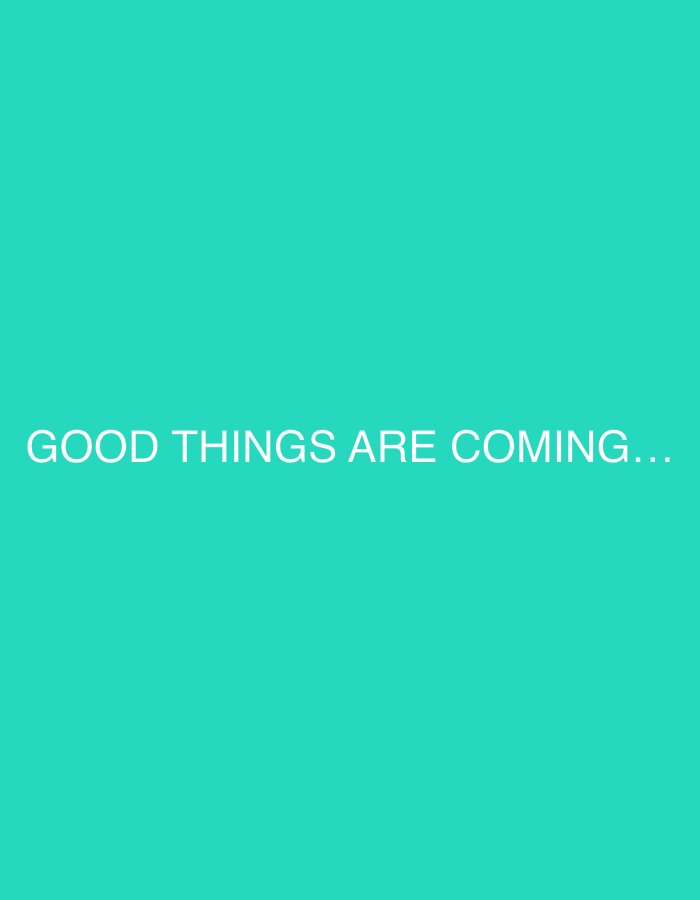 The image displays a flat, uniform teal-colored background. Centered horizontally and positioned in the lower-middle section of the frame is the phrase "GOOD THINGS ARE COMING..." rendered in white, sans-serif, uppercase lettering. There are no discernible people, specific objects other than the text, actions, or interactive elements present within the image. The environment is entirely abstract, consisting solely of color and text. No identifiable physical location, structure, or landscape within the city of Pokrovnik, Bulgaria, is depicted or inferable from the visual content. The image is a graphic display, devoid of photographic elements that would indicate a real-world scene.