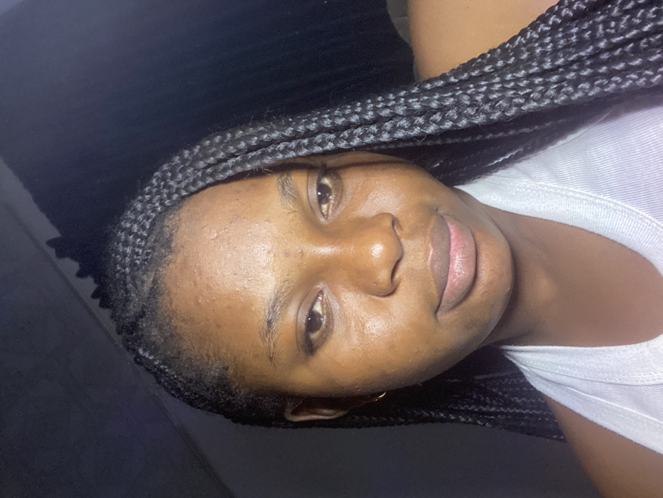 A close-up portrait of a Black woman with braided hair
