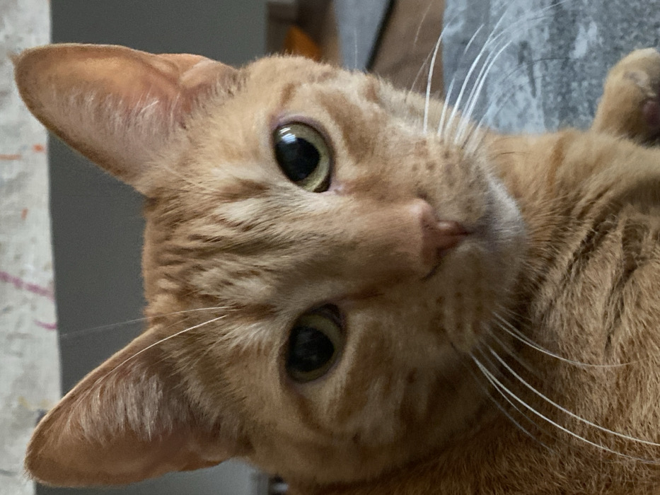 - "A close-up, head-on portrait shows an adult domestic short-haired cat" by FM-uK62y1, licensed under CC BY 4.0