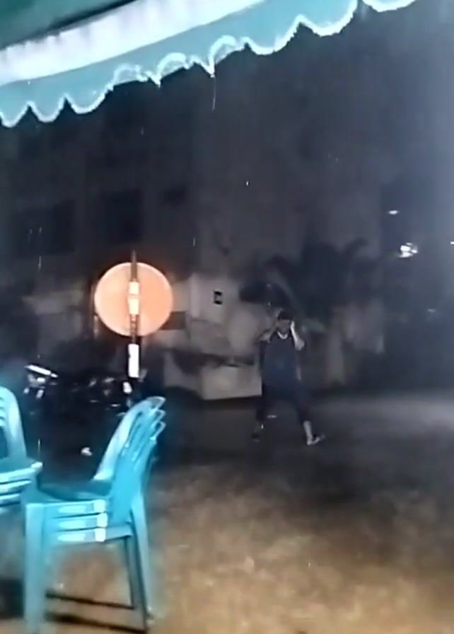 - "From under an awning, the video shows an outdoor scene at night" by FM-6VitY2, licensed under CC BY 4.0