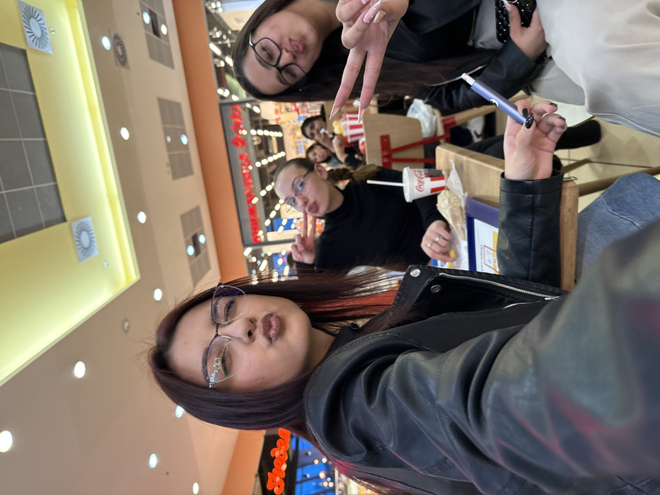 - "The image captures three young women in a casual dining area, identified as a food court within a shopping mall in Pleven, Bulgaria, confirmed by prominent red Cyrillic signage "Плевен" visible in the background" by FM-7qwE23, licensed under CC BY 4.0