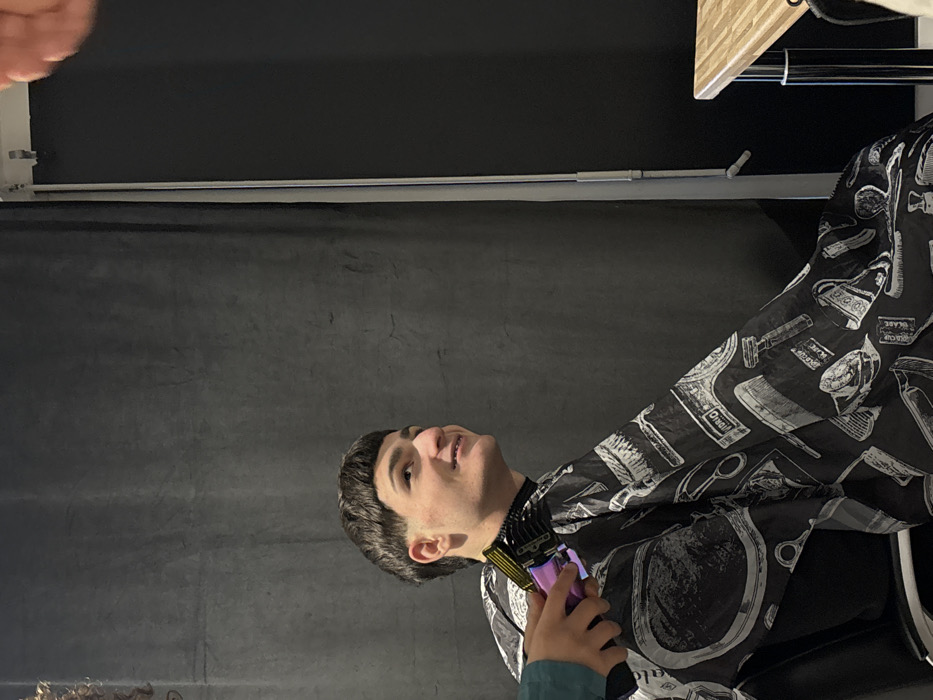- "A young male individual with dark brown hair, styled with a short fringe, is seated while receiving a haircut in an indoor setting in Ostwald, France" by FM-DELcs2, licensed under CC BY 4.0