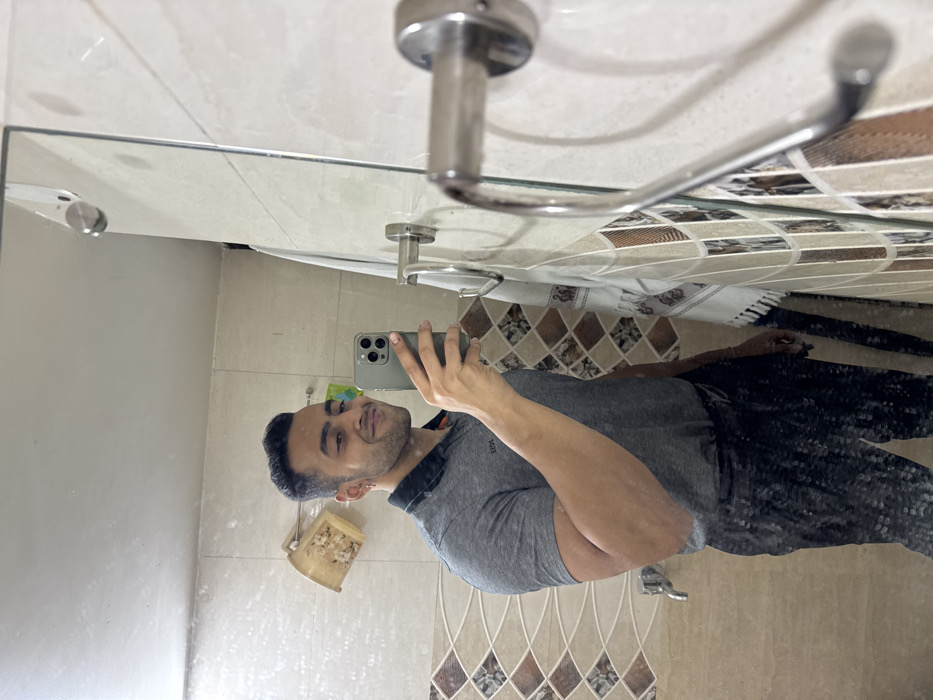 A male individual is captured in a mirror selfie within a bathroom setting in Kolkata, India