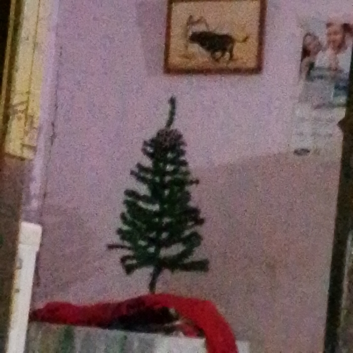 - "A small, undecorated green Christmas tree sits on a surface draped with a red cloth" by FM-smD6y2, licensed under CC BY 4.0