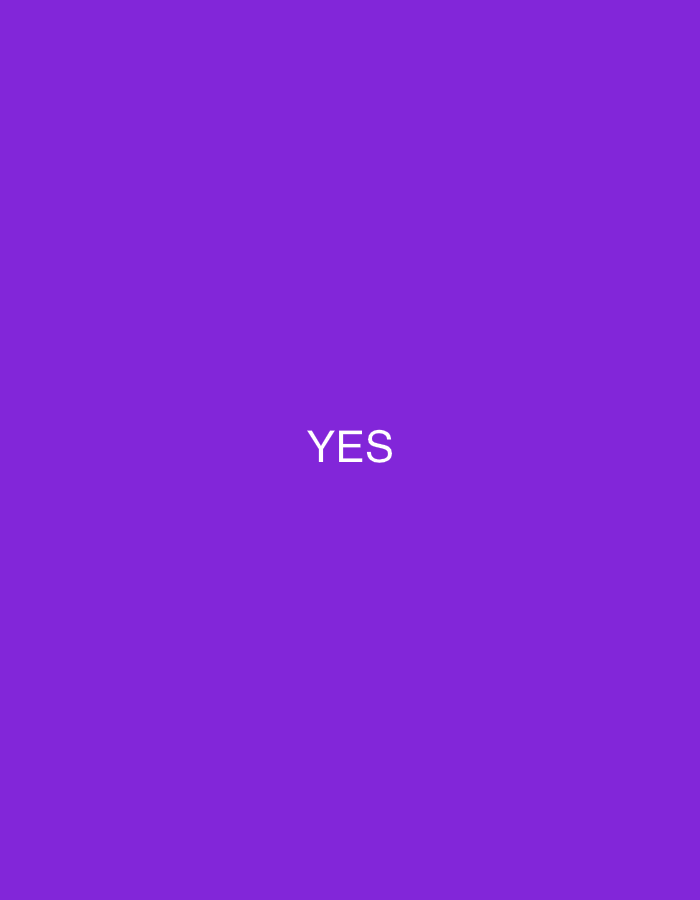 A solid purple background dominates the image, with the word "YES" centered in white, sans-serif font