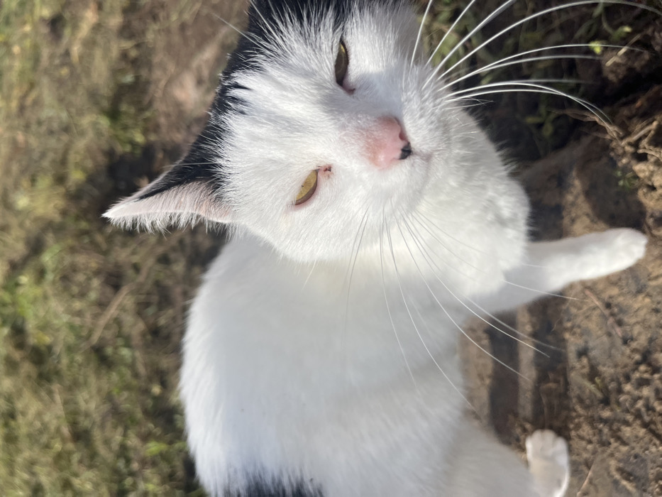- "A bicolored cat, predominantly white with distinct black markings on its head, ears, and a patch on its left flank, is observed standing outdoors in Saverne, France" by FM-rLGAz2, licensed under CC BY 4.0