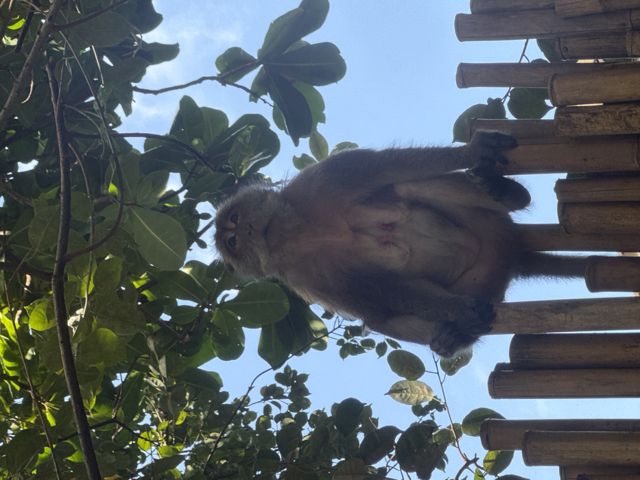 - "An adult female long-tailed macaque (Macaca fascicularis) is centrally positioned, sitting upright on a fence constructed from vertical bamboo poles of varying heights" by FM-M5A4l2, licensed under CC BY 4.0