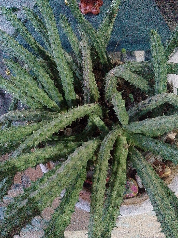 - "succulent plant with long, green, ridged stems radiating from the center" by FM-eI8CE3, licensed under CC BY 4.0