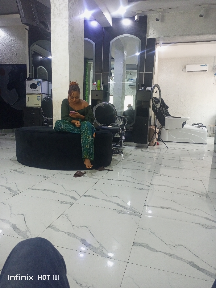 The scene is an indoor commercial space identified as a beauty salon or spa