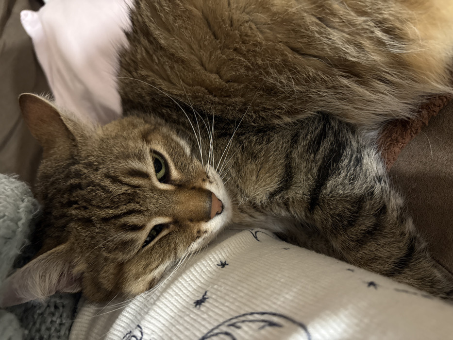 - "An indoor scene in Sandanski, Bulgaria, depicts a medium-haired domestic cat lying down in a state of rest or drowsiness" by FM-7QNAW2, licensed under CC BY 4.0