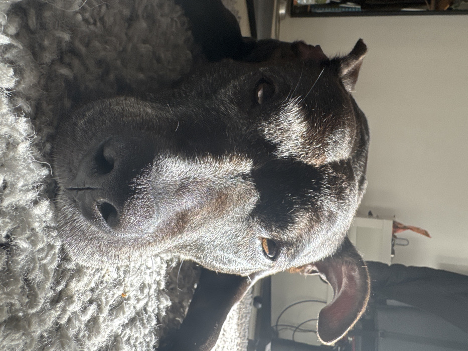 - "A close-up, eye-level shot captures a dark-colored canine resting indoors in the city of Saint-Denis, France" by FM-PhQdj2, licensed under CC BY 4.0