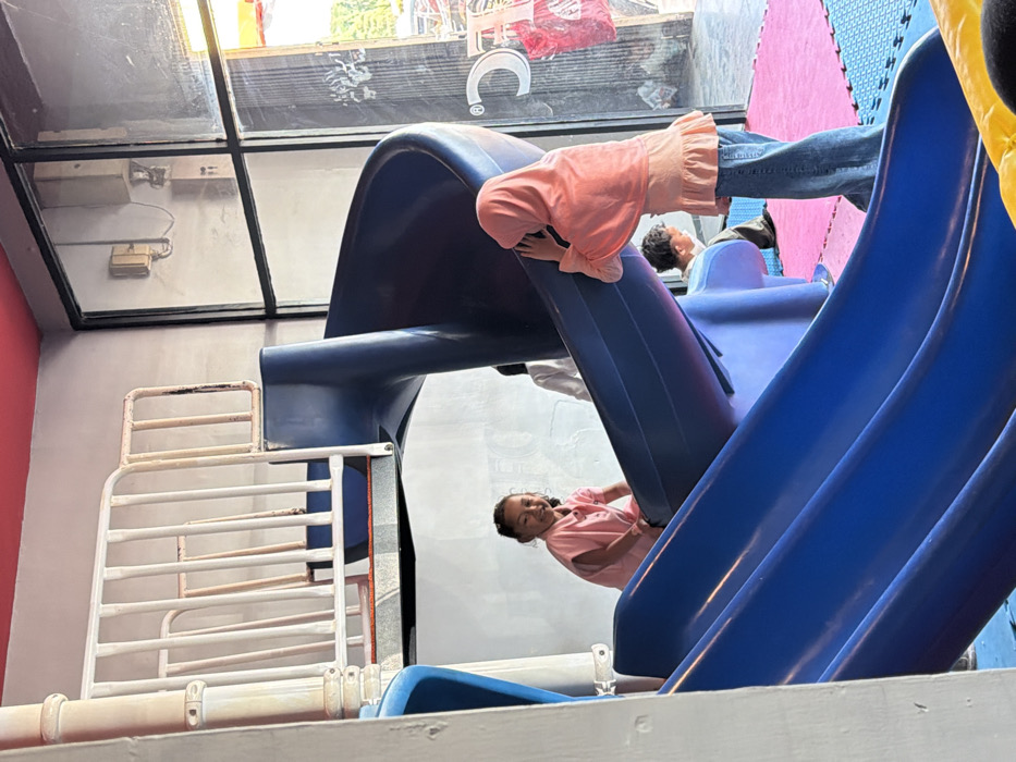 The image displays an indoor children's play area, likely within a commercial establishment in an unspecified city