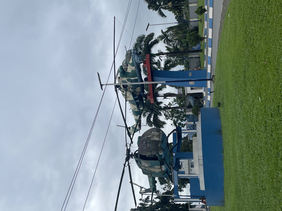 - "The image displays an outdoor scene in Rumuomasi, Nigeria, featuring two decommissioned military helicopters mounted on pedestals under an overcast sky" by FM-SHK203, licensed under CC BY 4.0