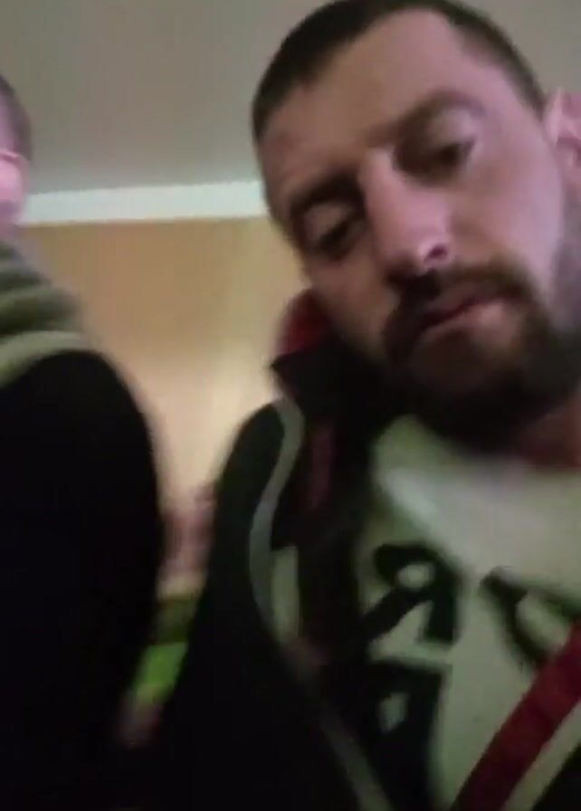 room with several men sitting down, most of them wearing yellow safety vests. Some appear to be listening, while others are looking around. The person recording the video moves the camera around to show the other individuals in the room.